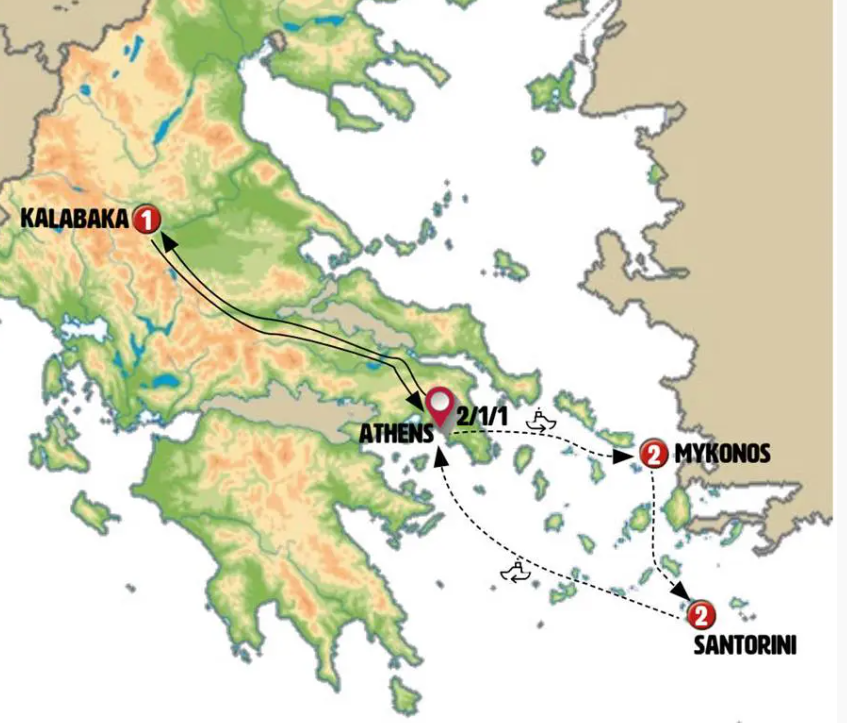 We’ll depart early in the morning towards northern Greece, stopping at Kamena Vourla, a charming seaside tourist hub surrounded by stunning landscapes. We´ll then proceed north, stopping at the Thermopylae Mountain Pass, the historic site of the famous battle. Next, we´ll visit Kastraki, a picturesque village with beautiful views of the entire valley, where you´ll have free time for lunch. Afterward, we´ll explore the Meteora, a breathtaking UNESCO World Heritage Site. Admission to one of its renowned monasteries is included. Dinner will be provided in Kalabaka.