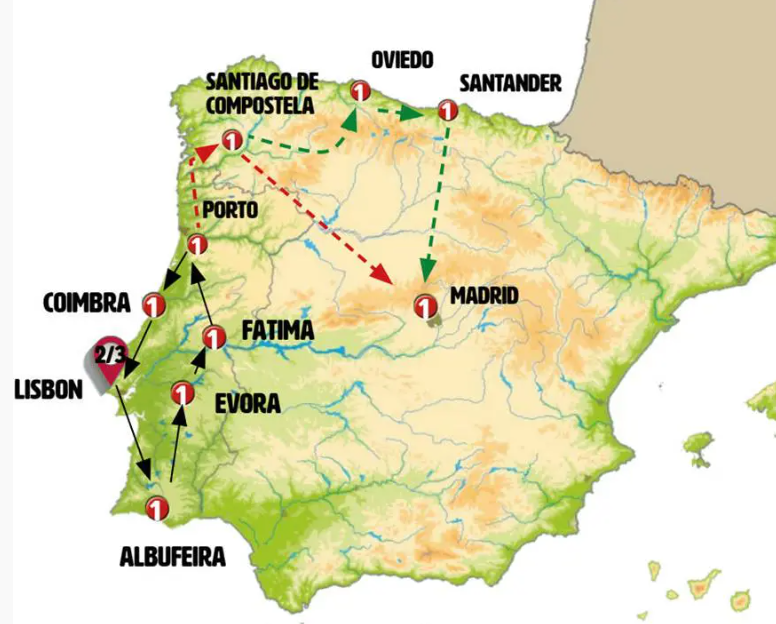 We'll travel along the Way of St. James, beginning with Lugo. Here, we'll have time to explore the historic town center and its Roman walls, a UNESCO World Heritage Site. Next, we'll visit O Cebreiro, a charming Galician stone village. Our journey will continue to León, where we'll arrive at lunchtime. In León, we'll visit the magnificent Gothic cathedral, renowned for its stained-glass windows, and enjoy a stroll through the historic town center.We'll then cross the Cantabrian Range on our way to Asturias, arriving in Oviedo by evening. We'll include a tour of the city with a local guide, either upon arrival or the following morning. During this hour-and-a-half tour, we'll visit the 9th-century cathedral, the Calatrava Congressional Palace, Campoamor Theatre, and Calle de la Rua.