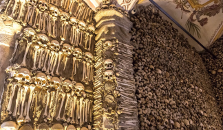 We'll travel to Faro, the peaceful city of the Algarve, for a leisurely stroll. From there, we'll continue our journey into the Alentejo region. On the banks of the Guadiana River, we'll visit Mértola, a walled town-museum, an important center during the Muslim era, dominated by its large castle that invites us to wander through its streets lined with whitewashed houses and historical corners. We'll then continue to Évora, where we'll visit the Chapel of Bones (admission included), a unique chapel built with more than 5,000 skeletons. Afterward, we'll explore this walled city, a UNESCO World Heritage Site, known for its medieval palaces, Gothic religious buildings, and ancient Roman temple.