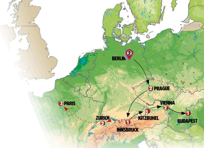 We´ll depart early and head to Bavaria, GERMANY. We’ll arrive in MUNICH by midday, where you´ll have free time to stroll through the historic city center and enjoy lunch. In the afternoon, we’ll continue to AUSTRIA. Upon arrival in the heart of the Alps, you´ll have time to explore INNSBRUCK, the capital of Tyrol. There will be time for dinner in the Golden Roof area and Old Town.